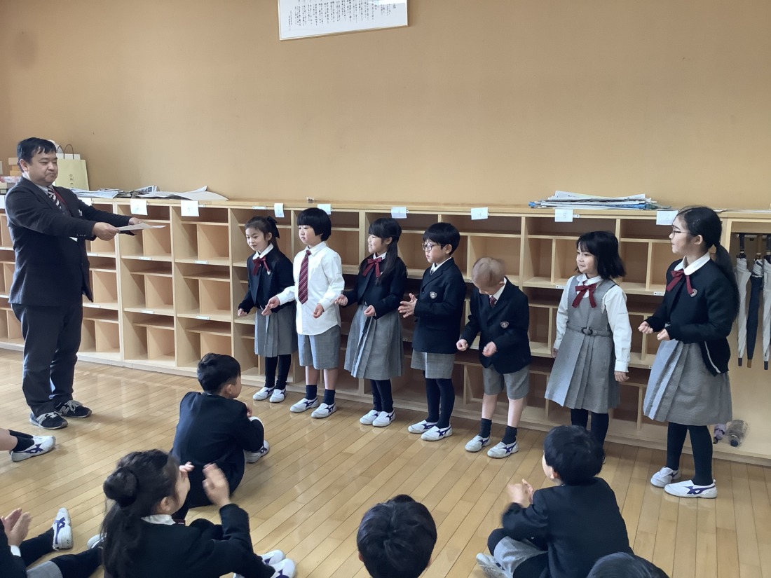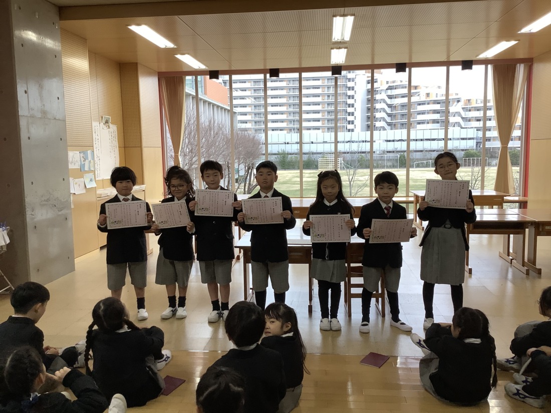 笑顔で表彰状を受け取りました。さあ、2年生は、百人一首大会です。しっかり覚えて、大会に臨んででほしいです。