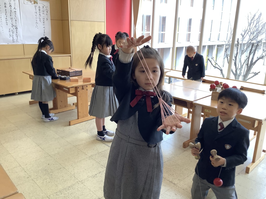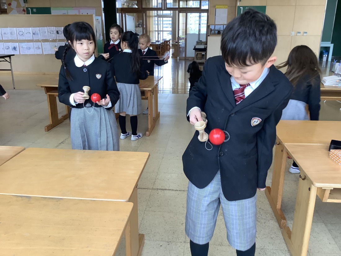 生活科で、昔遊びを楽しみました。教えてあげたり、教えてもらったり可愛い姿が見られました。