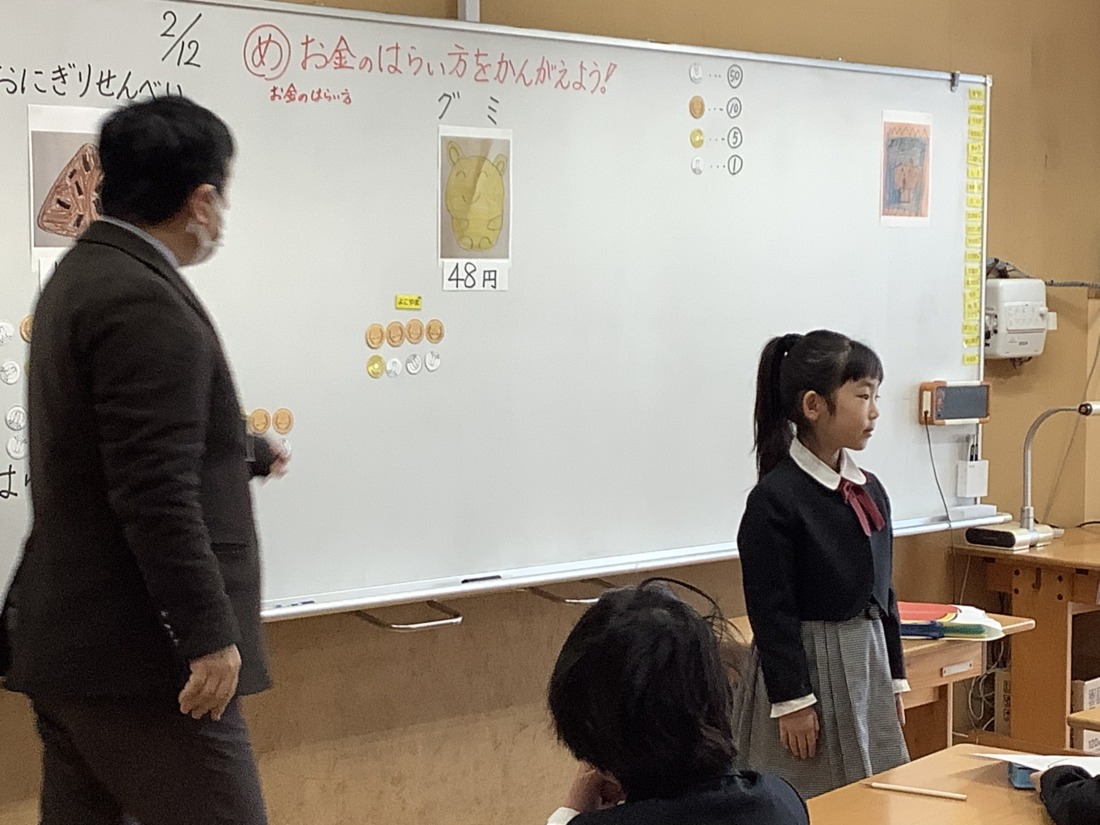 お菓子を買う時のお金の払い方を考えました。お釣りをもらう払い方。ぴったりな払い方。それぞれの理由がありました。