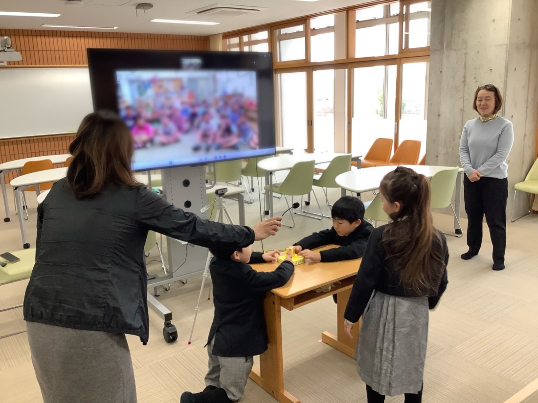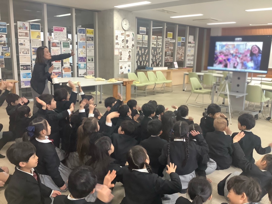 話す言葉は違うけれど、興味のあるものだったり、好きな遊びがにていることや、英語を使って海の向こうの子どもたちともつながれることを実感した1年生です。