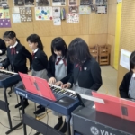 「ラ・クンパルシータ」という合奏曲を学習しました。音楽室から軽やかなタンゴのメロディーが流れてきました。曲の特徴を捉えた表現にするために何度も練習に励んでいく姿が見られました。友達と息を合わせて演奏することで生まれる響きのよさを実感することができ、素敵な合奏でした。