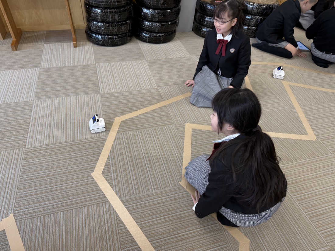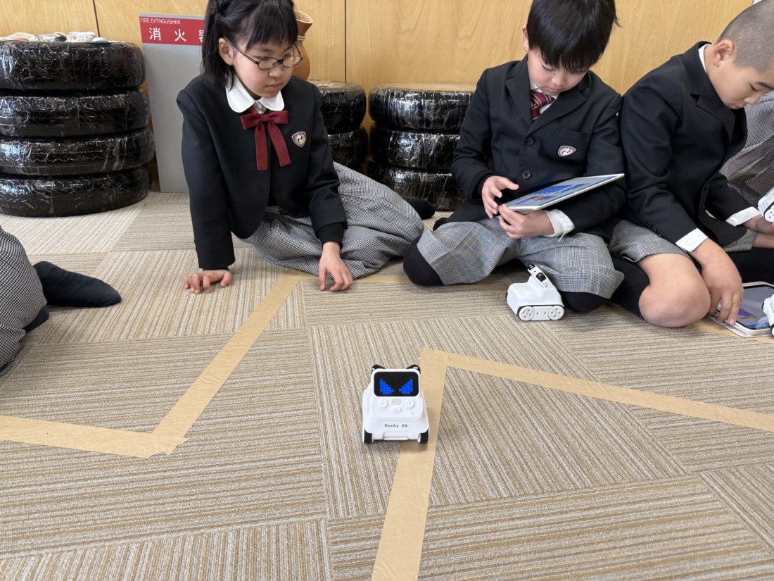 決められた道を進むために自分たちでプログラムを考えました。うまくいかなくても何度も挑戦し、道からはずれないように一生懸命考えました。