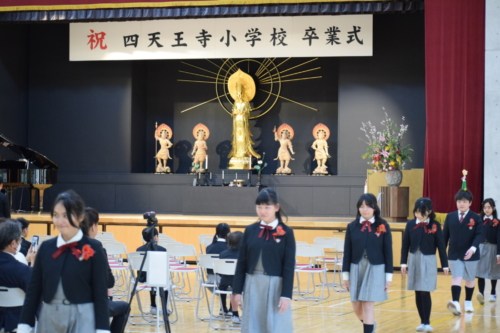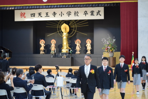 春のやわらかな日差しに包まれた本日、四天王寺小学校の卒業証書授与式が挙行されました。