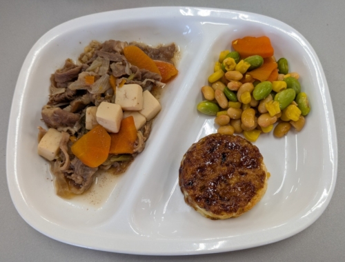 「肉豆腐」は豆腐・牛肉・玉ねぎ・人参・白ネギ・干ししいたけお6種類の具材を使っています。