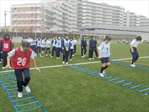 ラダーでしっかりと体を動かしてから、各チームで作戦会議です。