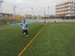 女子は、陸上競技の3チーム対抗リレーを行いました。