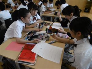 つぎに、「750にできるだけ小さな自然数をかけて、ある自然数の2乗にするにはどんな自然数をかければよいか」という問題を考えました。個人で考えたあと、グループに分かれて話合い、解法を共有しました。
