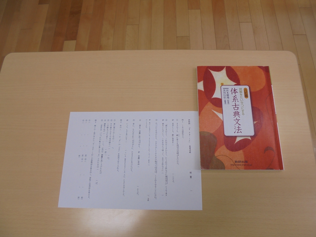 国語Bでは先取り学習で、古典文法を学んでいます。助動詞は難しいですが、わかるとどんどん口語訳できるようになって楽しいですよ。復習プリントをしっかりやって、テストに備えてください。