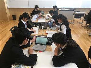 当時の時代背景を調べ考えた上で、生徒たちはお互いに意見を言い合っていました。