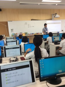 夏期講習中の時間を利用して、四天王寺小学校の5・6年生対象にプログラミング授業を行いました。