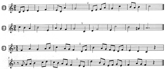 楽譜にあるように同じ音を2拍子と4拍子の表現で歌うというものになります。
